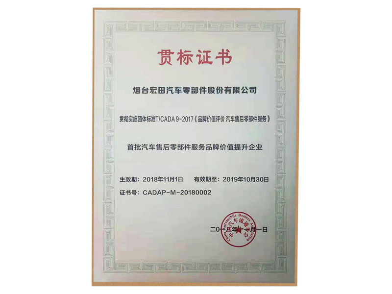 宏田公司獲得首批中國汽車流通協(xié)會汽車售后零部件服務(wù)品牌價值提升貫標(biāo)企業(yè)